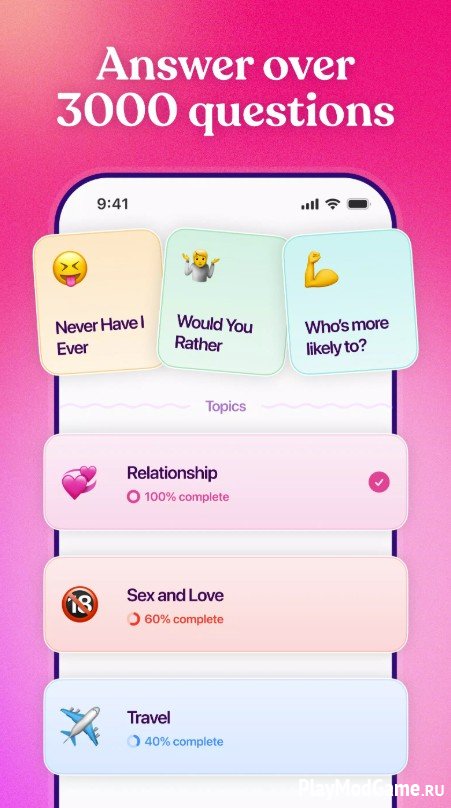 Тысячи вопросов ждут вас! Будьте готовы встретить вопросы и на взрослую тематику, ведь без них невозможно будет понять, что происходит в отношениях.