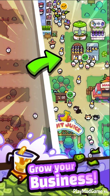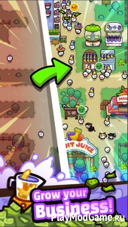 Производство сока и других напитков осуществляется с помощью специального оборудования. Со временем вы сможете как прокачивать имеющиеся машины, так и приобретать новые. Расширяйте ассортимент и привлекайте новых клиентов, ведь это напрямую повлияет на доход.