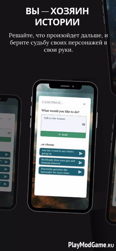 Прежде всего нужно задать точку отсчета истории, то есть выбрать жанр и стиль повествования, указать главных героев и другие нюансы. Вместо того, чтобы просто читать, ты принимаешь решения за героя, и каждый твой выбор открывает новые развилки сюжета. При этом можно использовать предложенные варианты действий или придумывать собственные - искусственный интеллект подстроит историю под любые твои решения.