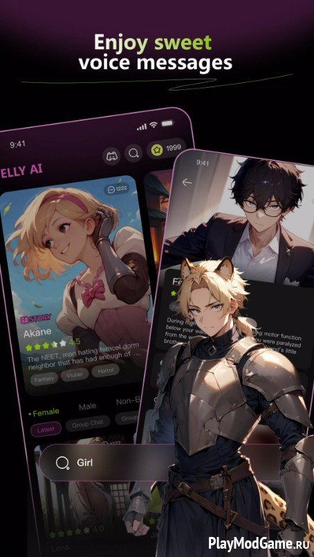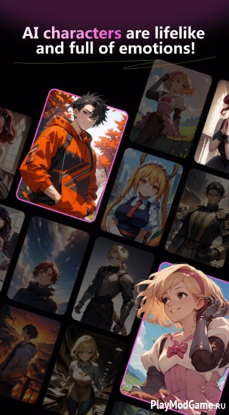 Можно создавать персонажей, подбирать им внешность, манеру речи и характер, придумывать для них жизненные истории. Это могут быть веселые и общительные собеседники, мудрые наставники, романтические партнеры и интересные личности для бесед. Разговоры с такими персонажами максимально приближены к живому общению - искусственный интеллект подстраивается под ваш стиль, настроение и запоминает детали из предыдущих бесед.