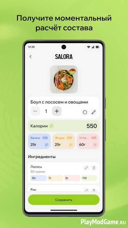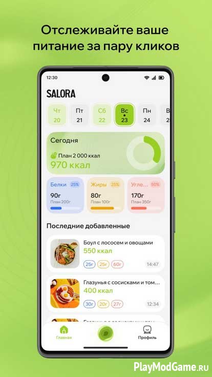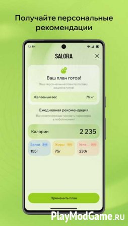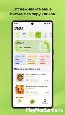 Salora позволяет быстро подсчитывать калории и нутриенты по фотографии блюда, используя нейросети, и предоставляет детальную аналитику питания.