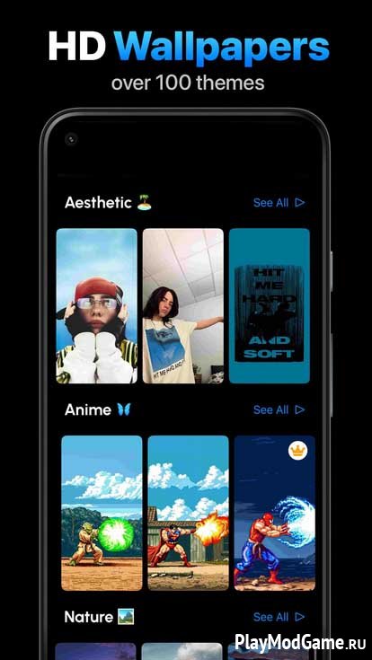Огромная коллекция живых обоев с высоким качеством картинки и плавными анимациями. Обои удобно разбиты на категории: хочешь природу - пожалуйста, горы, океаны, леса. Фанат аниме? Тут и персонажи, и сцены из любимых сериалов. Нравятся машины? Есть и спорткары, и винтажные модели. Абстракция, темные фоны, яркие узоры - есть из чего выбрать. Если хочется чего-то совсем уникального, включай редактор. В нем можно собрать свой фон с нуля: добавлять текст, наклейки, играть со слоями. Потом сохранить и поставить на рабочий экран.
