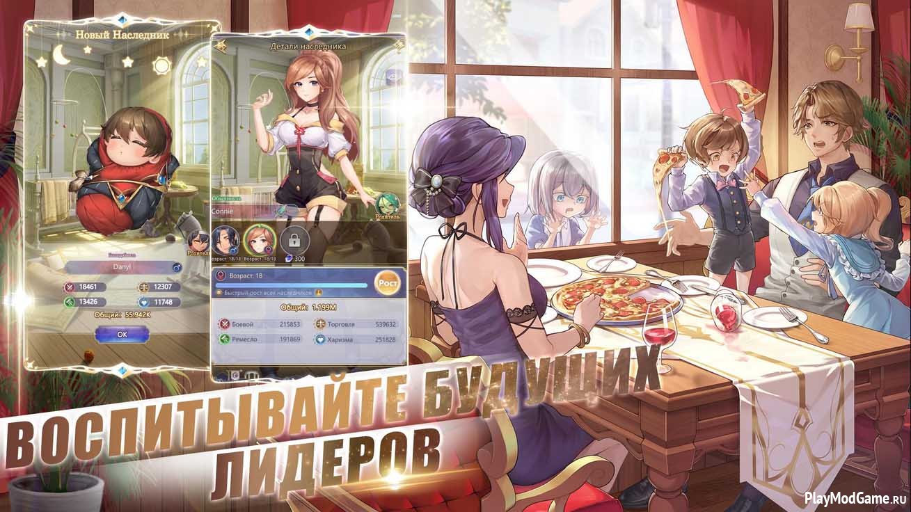 Важной частью игры являются отношения с другими правителями и фракциями. Через заключение браков между наследниками ты можешь создавать альянсы, которые обеспечат поддержку в войнах или торговле. В мире игры встречаются разные существа - эльфы, демоны, полубоги. Ты будешь взаимодействовать с ними и строить отношения, влияющие на ход игры. Войска тренируются автоматически, но в бою ты можешь управлять героями и принимать решения, которые определяют исход битвы.