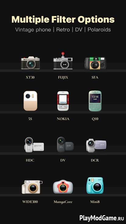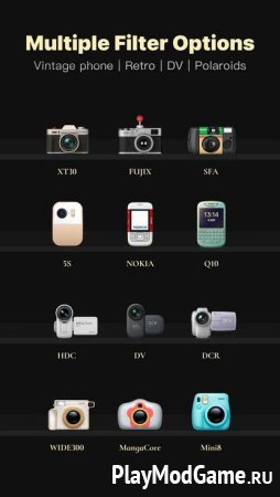 При съемке фото или видео приложение накладывает на изображение специальные эффекты, имитирующие особенности старой техники. Это может быть зернистость пленки, выцветшие цвета, шумы и помехи, характерные для видеокассет. Также можно добавить мягкий контраст и световые блики.