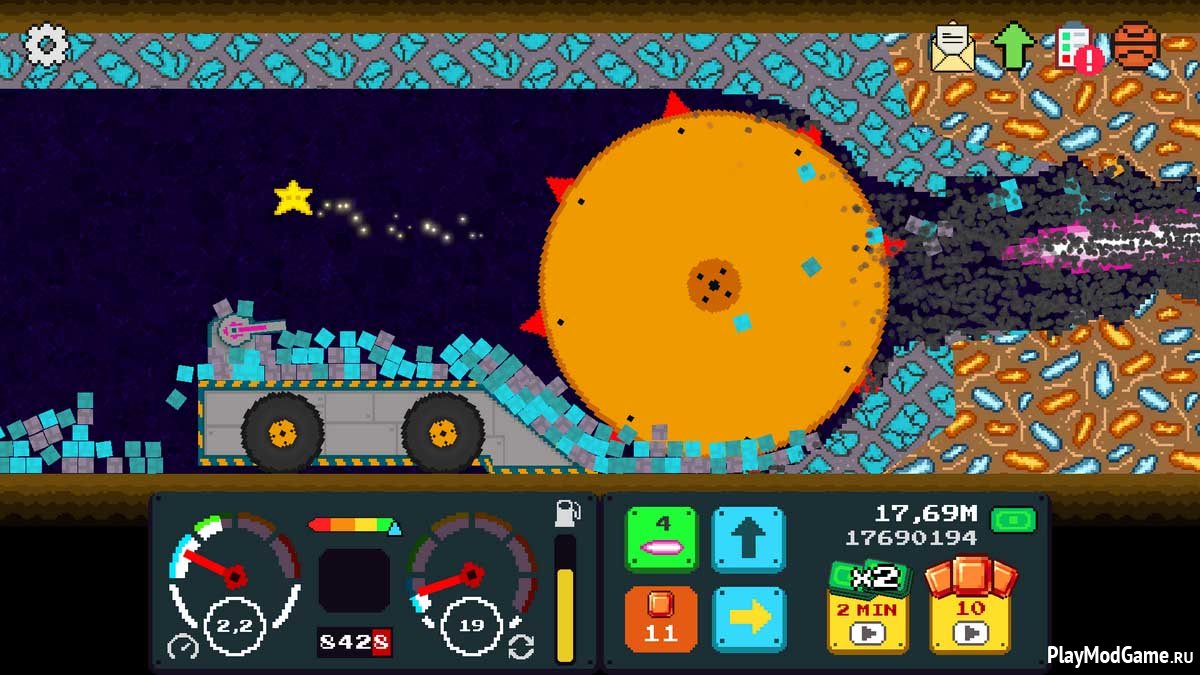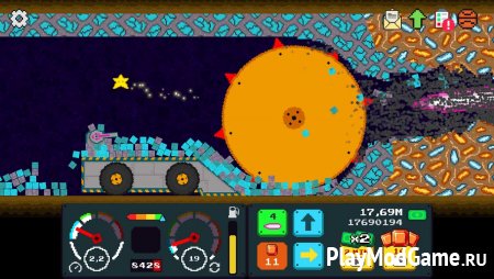 Пиксельная графика добавляет игре определенный шарм, а процесс бурения сопровождается потрясающими эффектами.