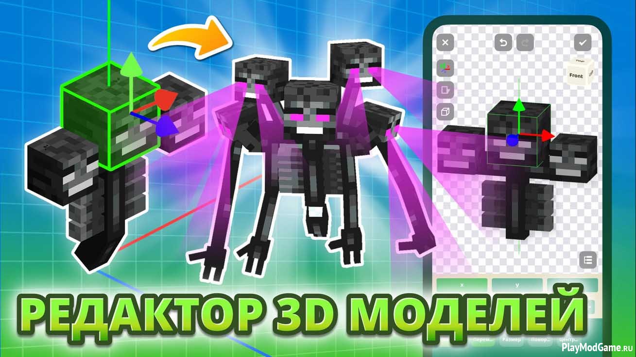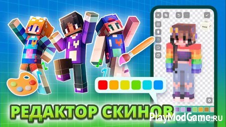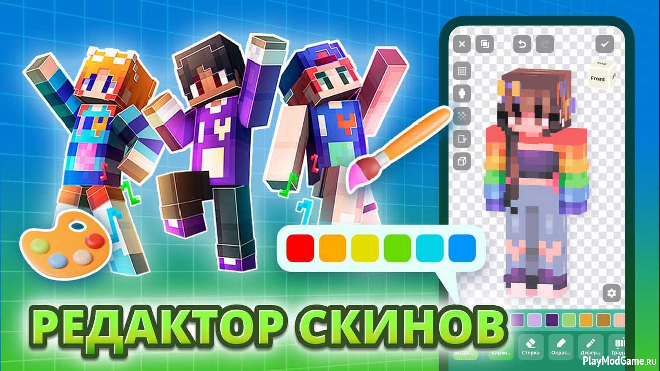 В специальном разделе можно самостоятельно создавать модели и скины. Чтобы реализовать творческие идеи, воспользуйтесь карандашом, цветным пером или ластиком. Функция «сглаживающего пера» поработает с яркостью и насыщенностью пикселей. Внимания заслуживает наличие эффектов вертикального и горизонтального градиента.