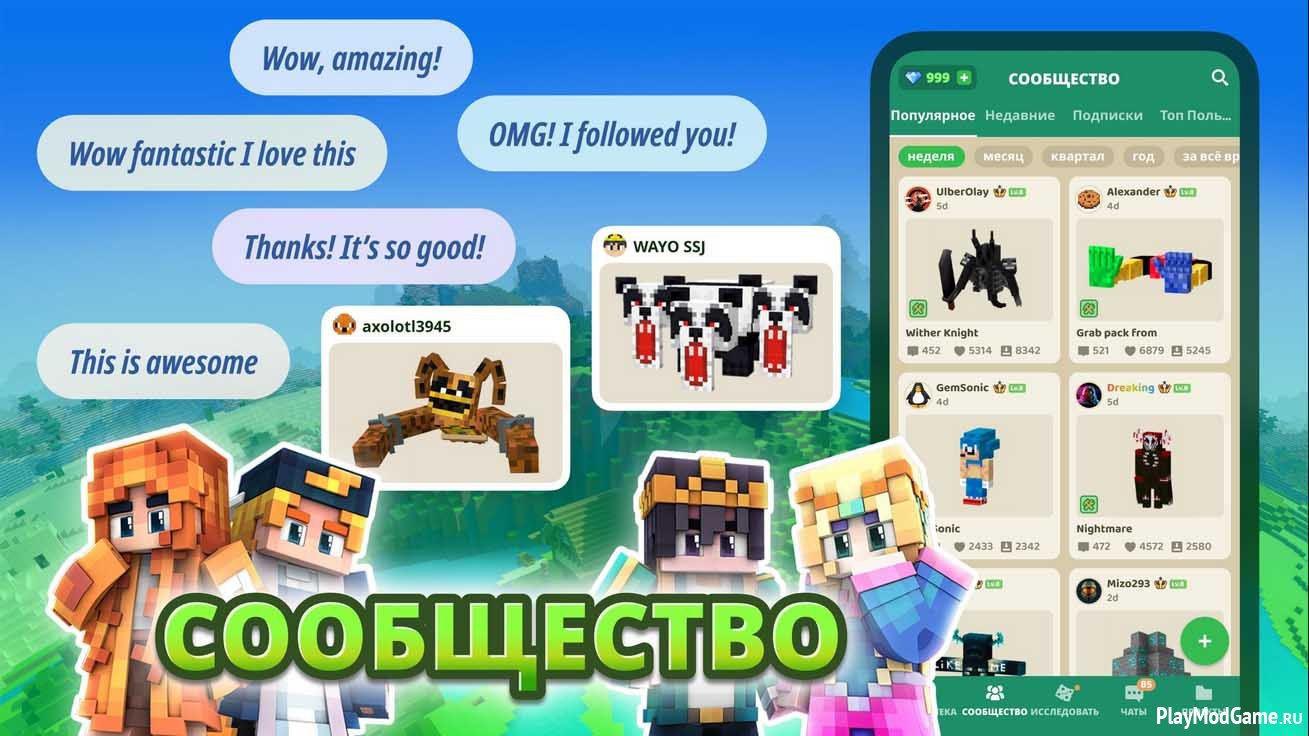 Здесь собрано более 3000 дополнений, касающихся персонажей, ресурсов, окружения и т.д., что открывает широкие перспективы для экспериментирования.