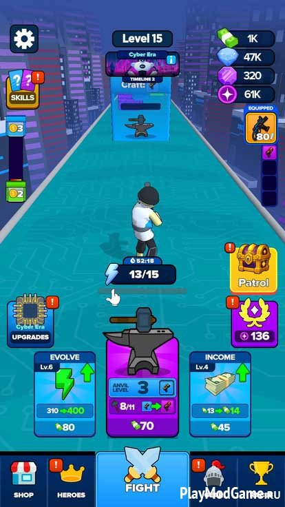 Так как эпохи разные, то и оружие здесь отличается. Примитивные палки, мечи, топоры и булавы со временем сменятся на автоматы и даже лазеры, нужно лишь добраться до соответствующего уровня.