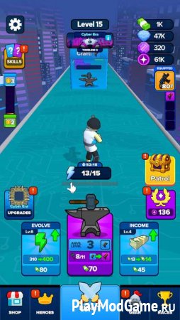 Персонажу не обойтись без оружия! Снабдите его самым мощным вооружением и снаряжением, прокачивайте его навыки и производите все возможные улучшения, инвестируя полученные за победы ресурсы.