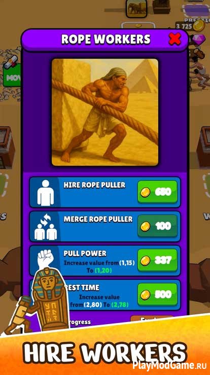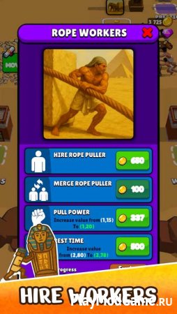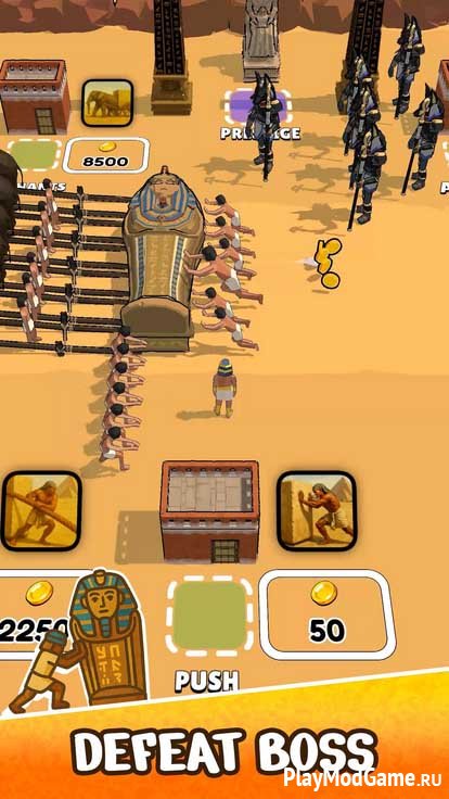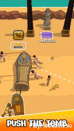 Практически все время вам придется толкать предметы, в том числе красивые саркофаги для знати. Сначала в вашем подчинении будет всего один рабочий, так что не рассчитывайте на быстрый результат. Продвигаясь вперед, вы получите вознаграждение, которое можно потратить на улучшения.