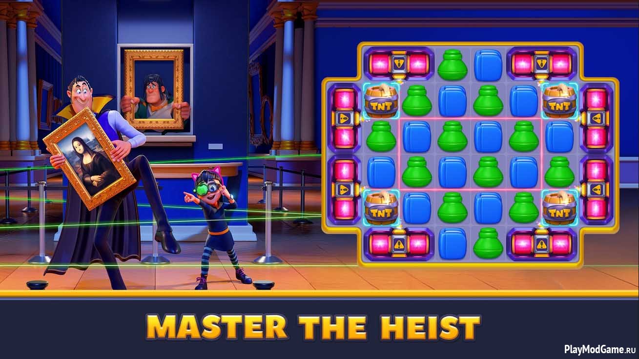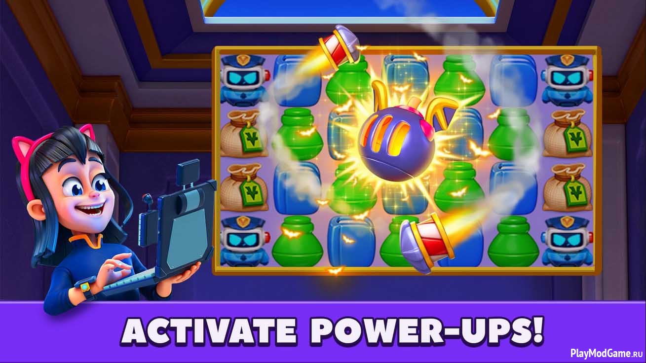 Игровой процесс строится на классической механике совпадений, но с многослойными и стратегическими элементами. На каждом уровне есть несколько слоев - скрытые, видимые и загадочные. Игроки используют комбо и умные комбинации, чтобы разрушать препятствия, собирать бонусы и продвигаться к цели. Специальные усиления помогают преодолевать сложные участки. Каждый уровень - это новое ограбление. Чем дальше игрок продвигается, тем сложнее становятся головоломки, а награды - ценнее.