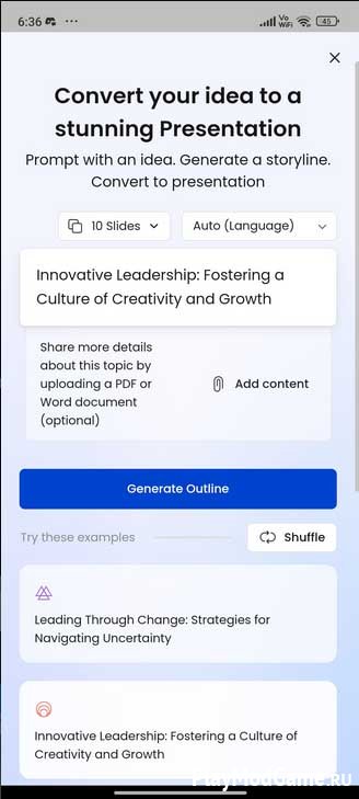 Presentation AI - облачный конструктор, использующий технологии искусственного интеллекта для достижения идеального результата презентаций. Он позиционируется в качестве более практичной альтернативы популярного приложения Gamma. Всего лишь за несколько секунд AI превратит вашу идею в яркую, впечатляющую презентацию. Вы можете надиктовать свои требования к презентации или просто оставить ссылку на веб-страницу. AI может переписать и упростить текст, изменить тон озвучки, добавить формулы и таблицы, сгенерировать изображения и добавить визуализацию. Также пользователи могут самостоятельно делать и редактировать презентации в онлайн-режиме, при чем с любого гаджета.