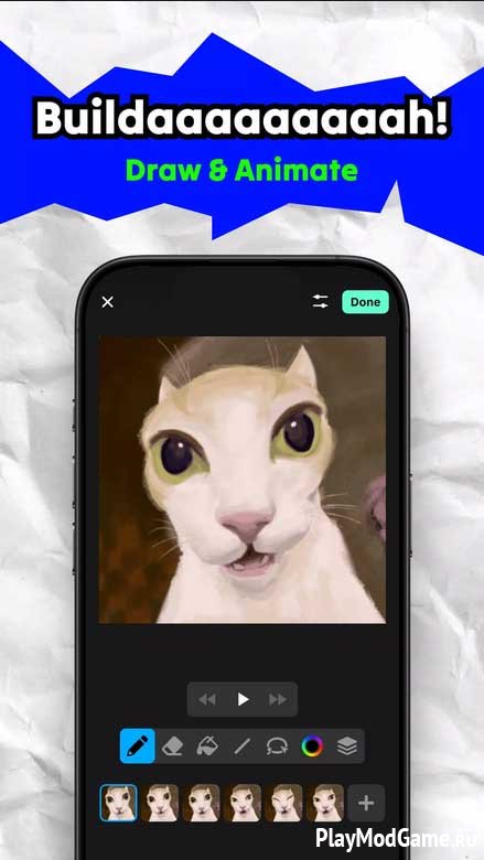 Начав, например, с создания персонажа или мема, вы можете выстроить вокруг него полноценную мини-игру и сыграть в нее вместе с друзьями. Приложение не ограничивает вас ни в инструментах, ни в форме выражения идей. Напротив художественное самовыражение поощряется и всячески стимулируется. В частности, пользователи могут выбирать стиль повествования и создания персонажей (пиксельные, рисованные от руки или схематичные). Для этого у платформы есть целый набор инструментов, включая кисти настраиваемой толщины, слои, инструменты для заливки красок и анимации движений. Но и это еще не все. Больше о новой социальной платформе для разработчиков игр вы узнаете в процессе ее использования. Присоединяйтесь и начинайте творить.