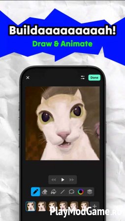 Builda - Create and Play - это место для самовыражения, развития навыков игр, общения и творческого взаимодействия. Платформа предлагает полный набор инструментов для авторов игр. Здесь можно творить, фантазировать, делиться идеями и внедрять инновации. Другими словами, делать все, на что хватит вашей фантазии. И для этого вам не нужны знания программирования или специальные навыки художника-аниматора. Весь творческий процесс, в частности рисование, основан на простых касаниях и перетаскиваниях. А благодаря функциям совместной работы, работать над одним проектом могут одновременно несколько человек.